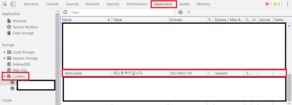 구글 크롬에서 개발자도구(F12)를 눌러 현재 가지고 있는 쿠키값을 확인할 수 있는데